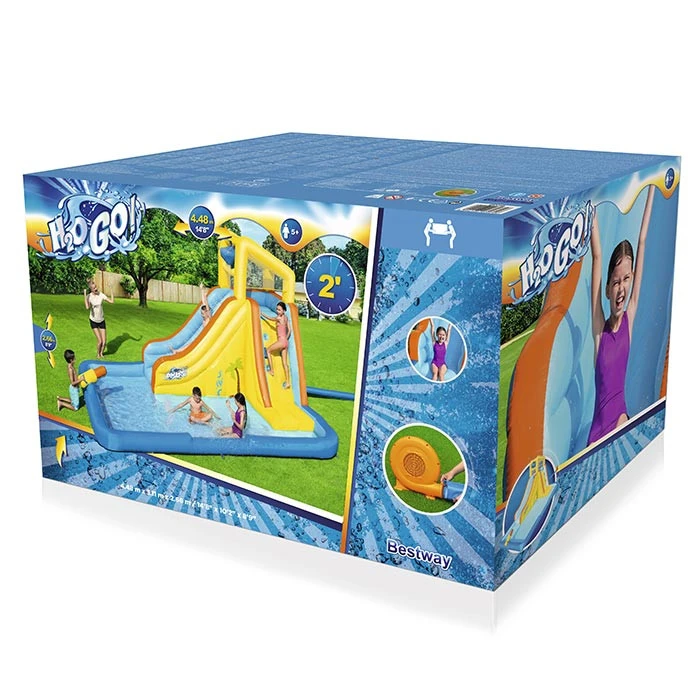Aire de jeux à air constant avec toboggan, pataugeoire et canon à eau Beachfront Bonanza H2OGo!™ 448 x 311 x 266 cm