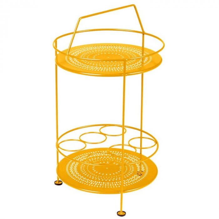 Le bar portatif sera idéal pour compléter votre mobilier de jardin Montmartre et se fondra parfaitement à votre décor. Ce petit bar s’avère très utile pour le service grâce à son porte-bouteille intégré, il vous sera possible de glisser vos bouteilles de vins ou carafes d’eau. Son double plateau en tôle acier perforée est également pratique pour disposer des objets de décoration ou condiments de cuisine. Très maniable car léger, ce bar portatif vous suivra partout.
