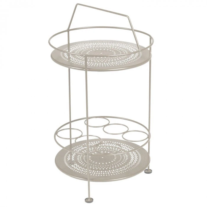 Le bar portatif sera idĂ©al pour complĂ©ter votre mobilier de jardin Montmartre et se fondra parfaitement Ă votre dĂ©cor. Ce petit bar s’avĂšre trĂšs utile pour le service grĂące Ă son porte-bouteille intĂ©grĂ©, il vous sera possible de glisser vos bouteilles de vins ou carafes d’eau. Son double plateau en tĂŽle acier perforĂ©e est Ă©galement pratique pour disposer des objets de dĂ©coration ou condiments de cuisine. TrĂšs maniable car lĂ©ger, ce bar portatif vous suivra partout.Â