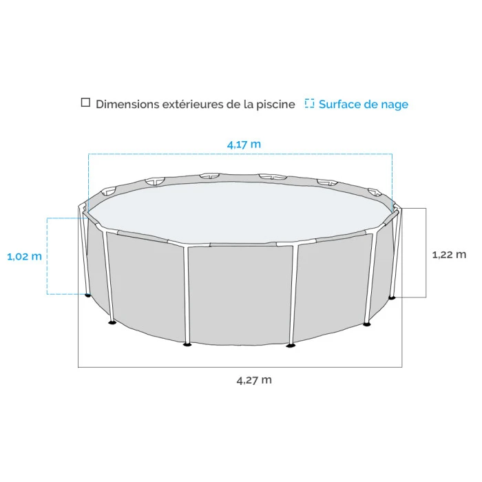 - Dimensions utiles : 4,27 Ø x 1,22 m