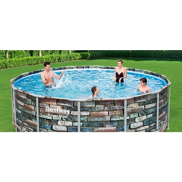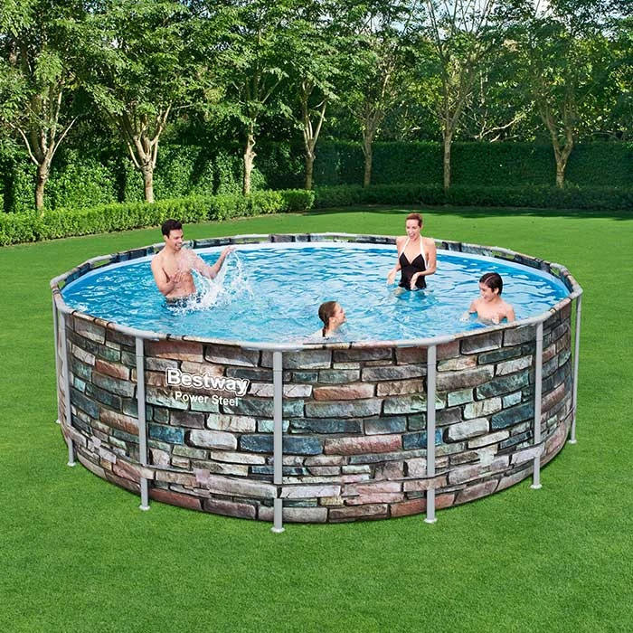 La piscine tubulaire Power Steel Stone ronde est une piscine originale de taille moyenne, idéale pour profiter en famille, des joies de la piscine dans votre jardin.