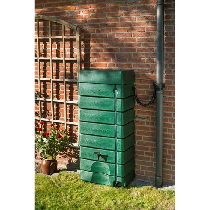 Pratique, un robinet se trouve sur la face avant du récupérateur pour faciliter le remplissage de votre contenant. Une jauge extérieure permet de connaître le volume d’eau stocké.