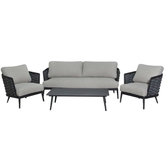 Pour vous accueillir dans un confort total, votre salon de jardin Tim est composé de structures en aluminium pour les sièges (canapé et fauteuils) et la table.