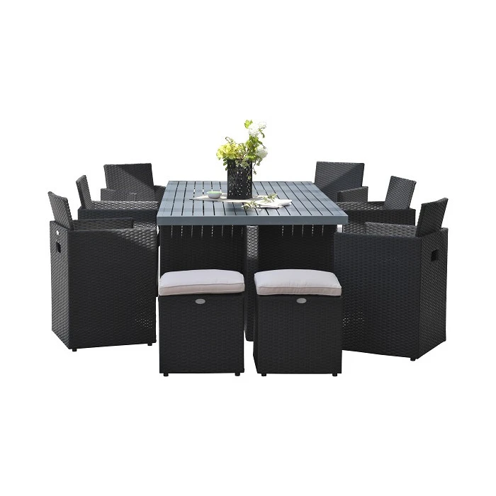 Le salon de jardin Encastrable est recommandé pour 10 personnes. Disposé sur une terrasse, il sera à même de créer un espace chaleureux pour un repas convivial alliant simplicité et praticité.