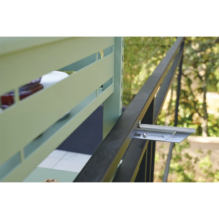 Vous l’avez compris, cette pièce s’adaptera à tous les balcons, mais pas que, vous avez aussi la possibilité de la fixer contre un mur ou l’accrocher à une ballustrade avec son système de fixation réglable en inox. La table dispose également d’un bac de rangement, vous offrant la possibilité de décorer votre balcon ou d’y ajouter vos boissons & condiments de cuisine.