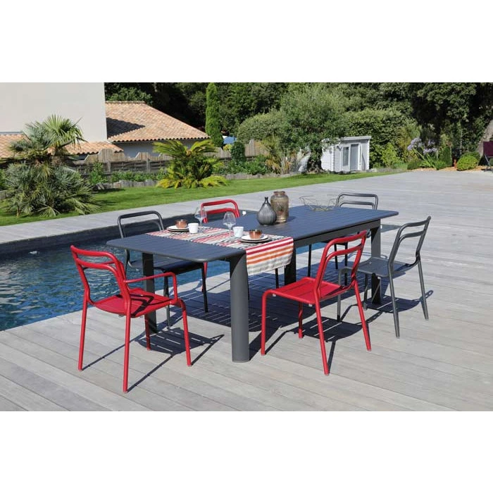 La table de jardin EOS graphite se mariera remarquablement avec tous types de chaises. Elle sera idéale pour les réceptions nombreuses !