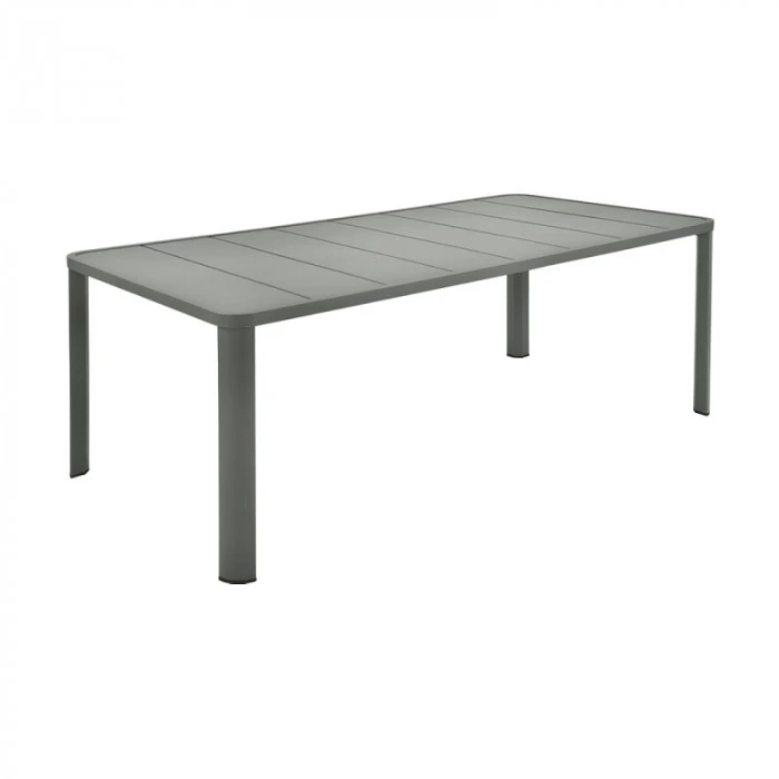 Cette table peut accueillir jusqu’à 10 personnes, pour des repas en famille ou entre amis. Elle profite d’une grande taille, on peut y installer de nombreuses assises, que ce soit des chaises ou des fauteuils. Sa structure en tubes d’aluminium et son plateau en lattes d’aluminium sont résistants aux agressions extérieures. Découvrez également toutes les tables de jardin Fermob en acier