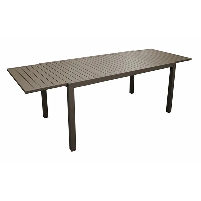 La table de jardin Solem est disponible en deux coloris (gris et café) et s’accordera parfaitement avec tous types de chaises.